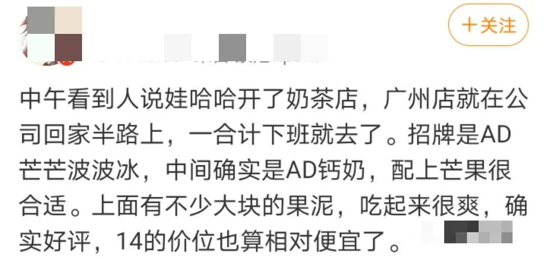 (还蛮好看的)但是那经典的娃哈哈LOGO以及存在感极强的AD钙奶元素是娃哈哈开的奶茶店没错了提到娃哈哈当然就是AD钙奶了这可是8090后共同的童年回忆娃哈哈奶茶也不出所料的以AD钙奶作为灵感元素主打乳酸系列茶饮几款热门饮品都有用到AD钙奶制作▼草莓乳酸钙奶AD芒芒波波冰雪山钙奶暮冬抹茶看着都好好喝的样子不仅如此除了主打的AD钙奶系列当下流行的奶茶元素芋泥、奥利奥、芝士果茶、脆波波娃哈哈奶茶也都没落下▼价格也比较适中,在12-22元之间消息一出奶茶爱好者和娃哈哈粉坐不住了纷纷打卡反响都还挺不错▼目前娃哈哈奶茶店只在江苏和广州有门店所以大部分的网友只能望图止渴期待它快点开分店能早日喝上一杯娃哈哈奶茶▼圈主忍不住说一句身为娃哈哈网所在地我们杭州难道不配早早拥有嘛!!!作为食品饮品界的老牌巨头娃哈哈拥有许多经典产品以及业内出名的强大渠道优势但电商时代的来临物流网络的发展层出不穷的新产品瓦解了娃哈哈骄傲的优势且近几年,娃哈哈的销售额一直在下滑宗庆后公开表示明年销售额要达到700亿大关寻找新的营收增长点尝试新的创新战略是娃哈哈生死存亡的关键娃哈哈这一次开奶茶店应该也是它“自救”的一次尝试 另外,随着线下实体茶饮市场逐渐饱和竞争激烈、融资热冷却、同质化等问题日趋严重线下茶饮越来越难做这也是文章开头提到的那些品牌频频联名、跨界的原因之一多元化的发展是线下茶饮品牌寻找出路的方法之一娃哈哈作为一个入局过晚的参赛者能否后来居上在奶茶圈子里占据一席之地咱就拭目以待吧!